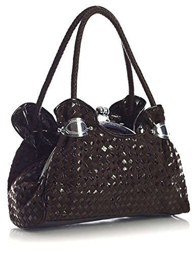 Big Handbag Shop offer Big Handbag Shop Womens Faux Leather Silver Kisslock Woven Contrasting Shoulder Bag ( 6020-1 Coffee). This awesome product currently limited units, you can buy it now for £26.99, You save -